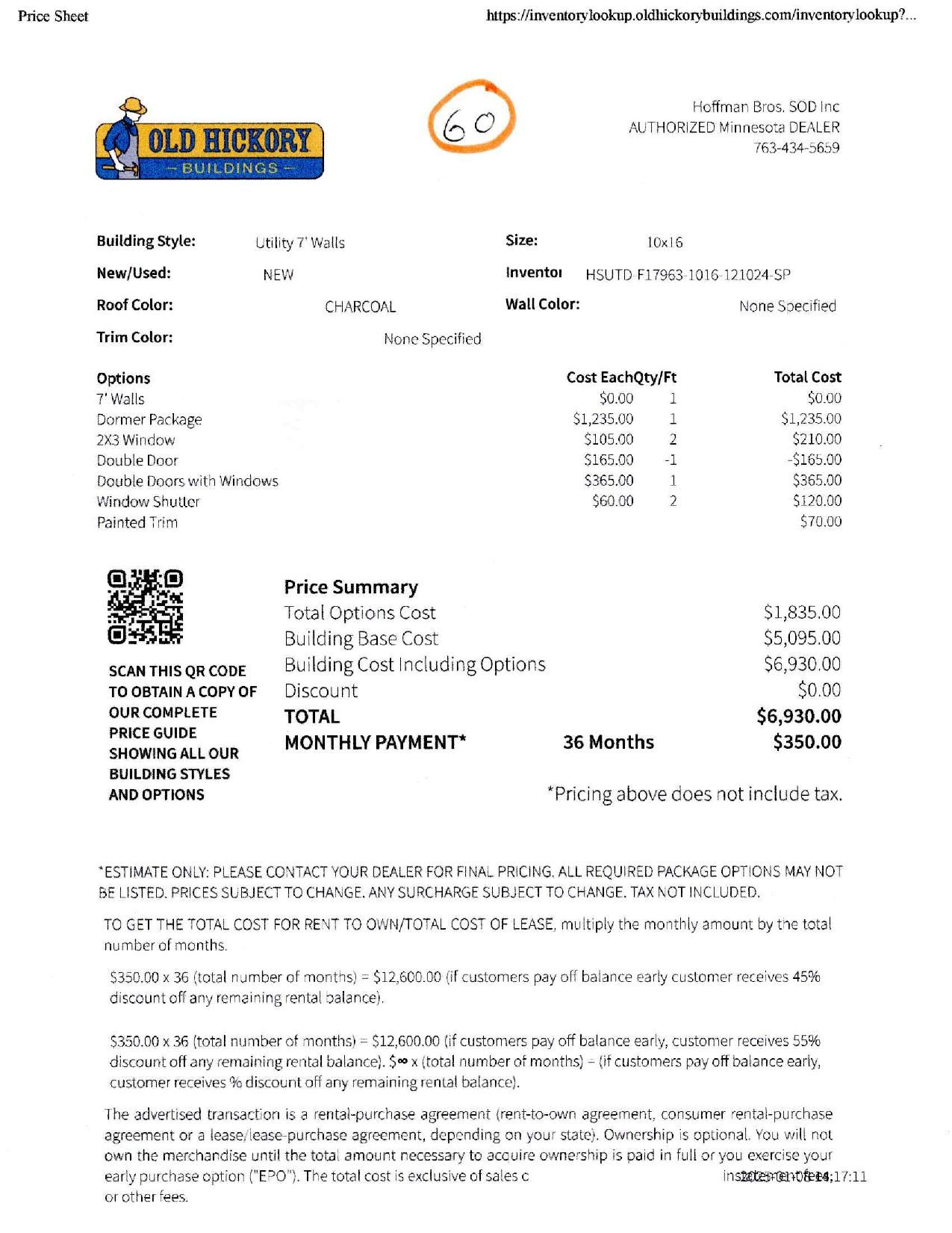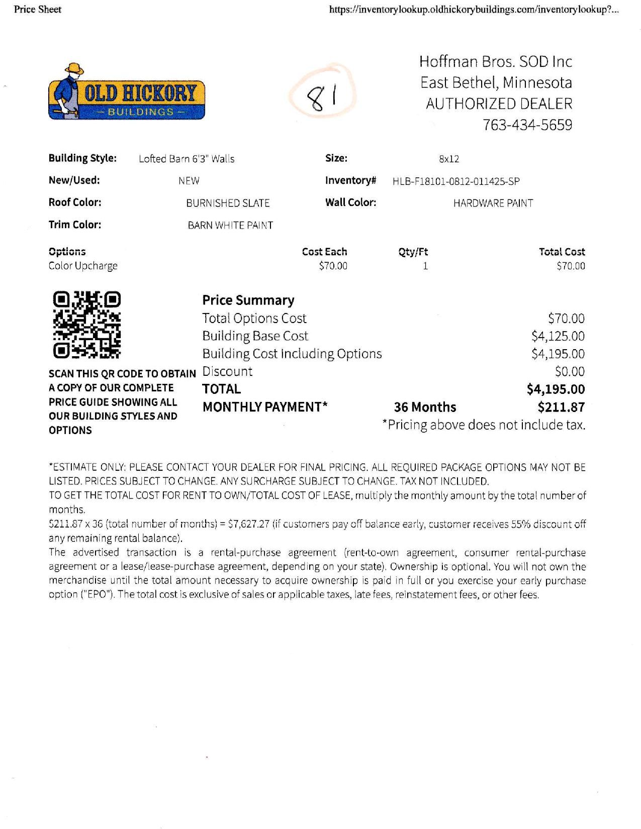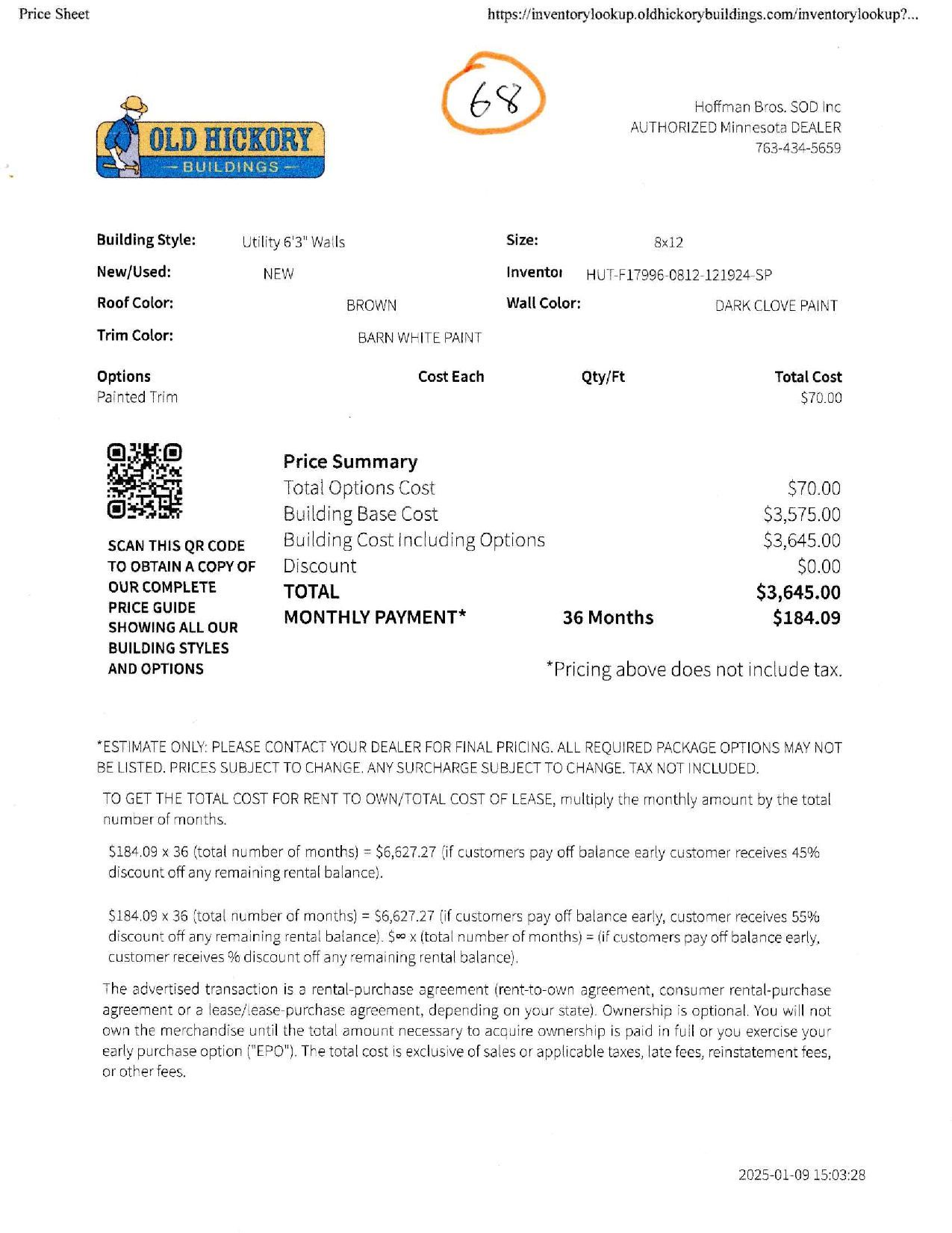 The sheds on our lot have orange number signs which correspond to the number in the circle in the price lists.