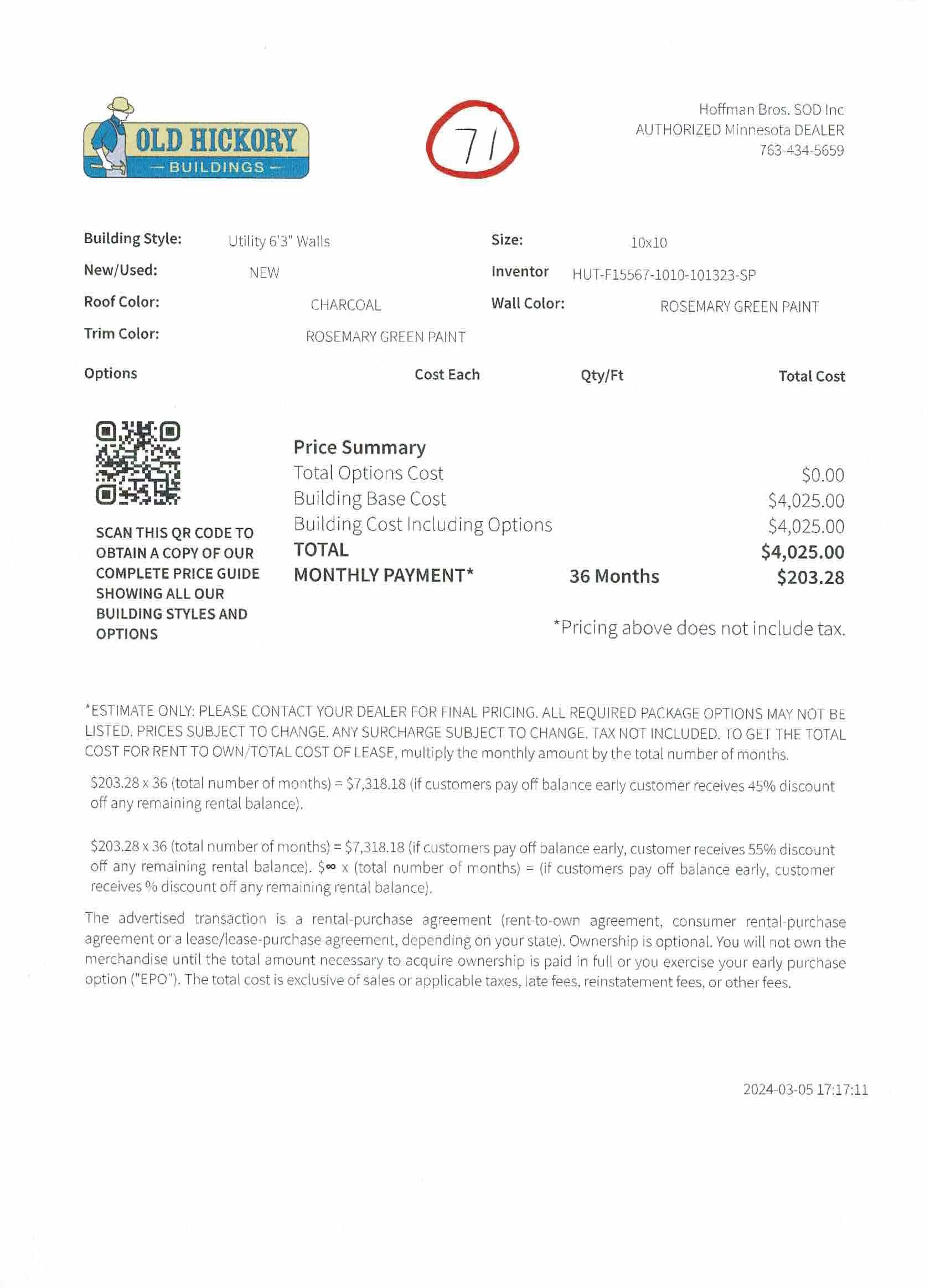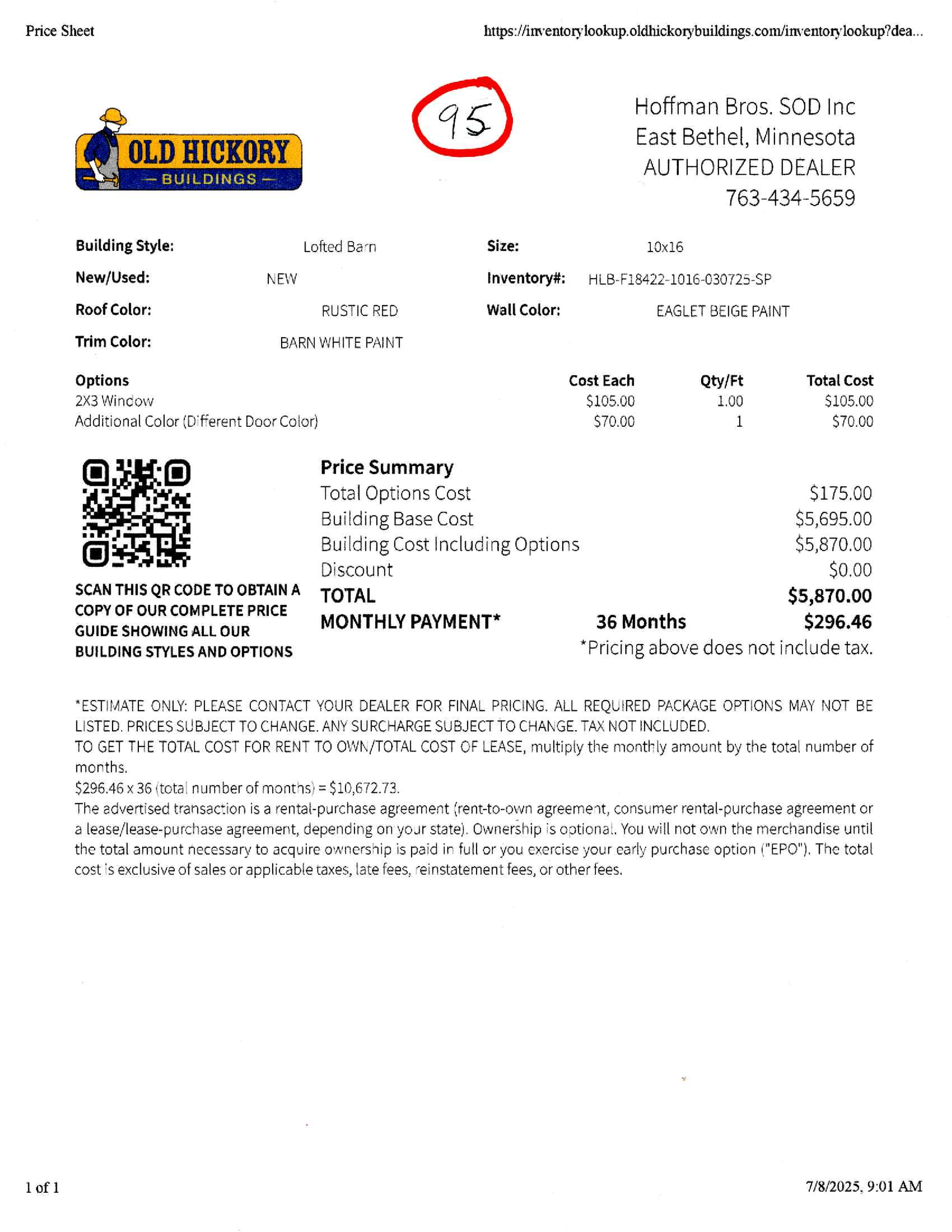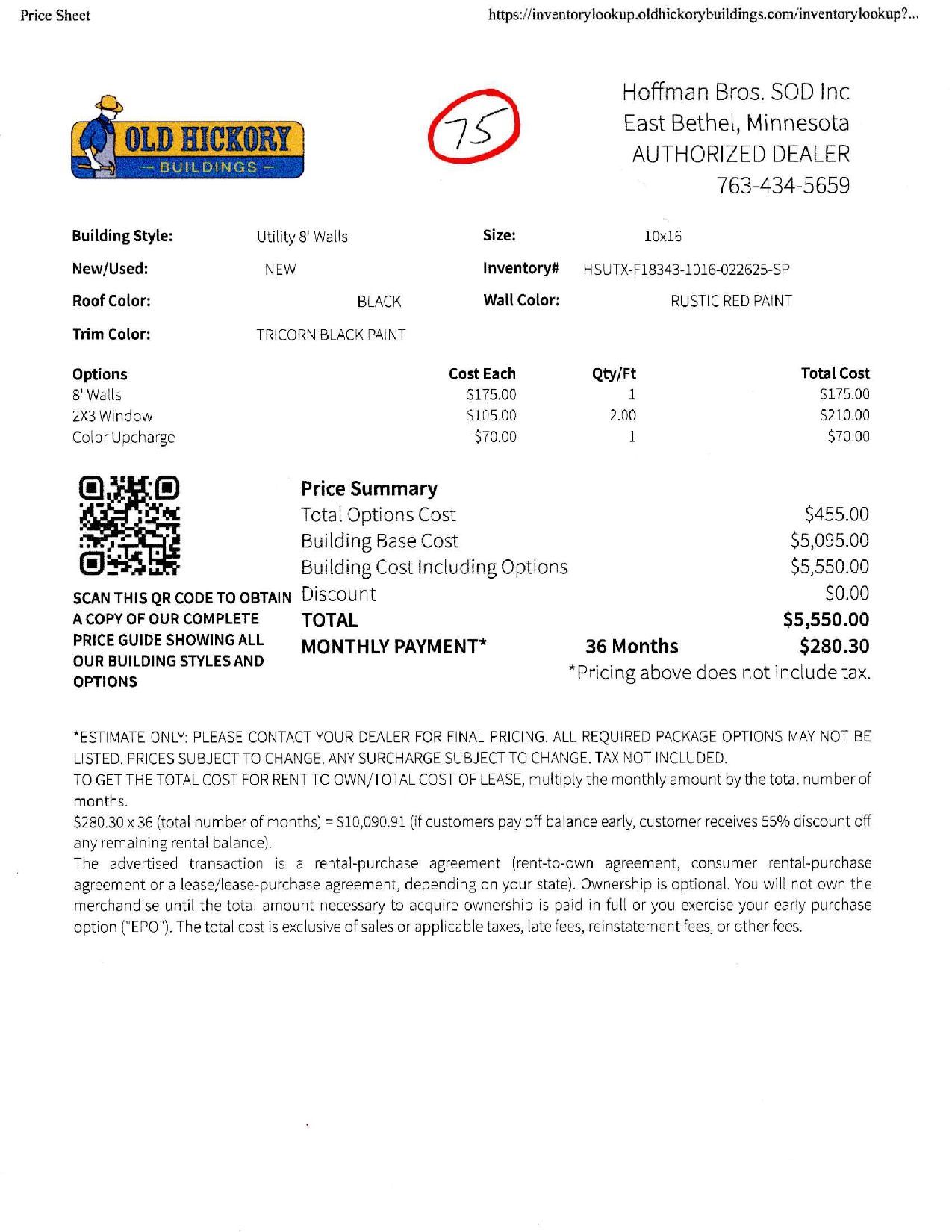 The sheds on our lot have orange number signs which correspond to the number in the circle in the price lists.